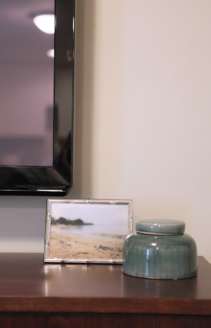 Sew Hip and Humble made some beautiful pillows for the sofa and we pulled out the tan and blue from the fabric for the rest of the room.
